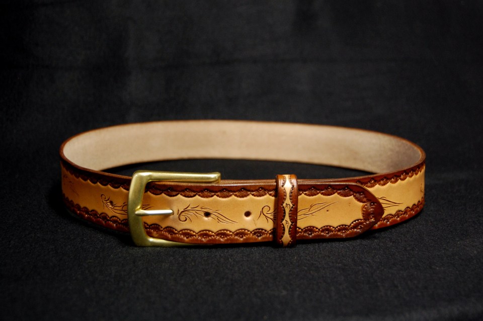 Custom carved wheat belt ← Previous Next → SOLD Custom leather belt with a conceptual design to represent wheat.