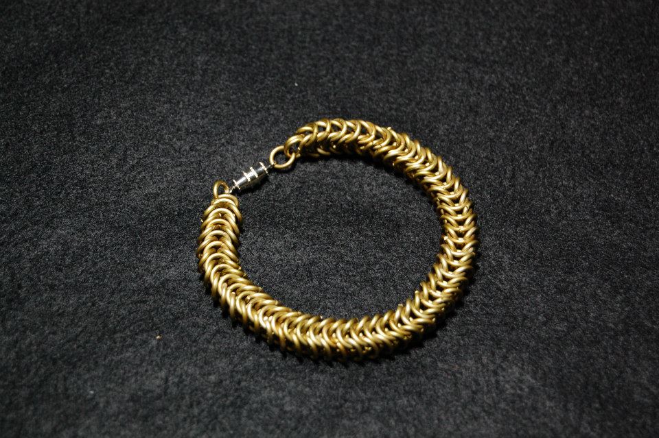 Box Weave Bracelet ← Previous Next → Box Weave Gold Bracelet Box Weave bracelet in gold anodized aluminum.