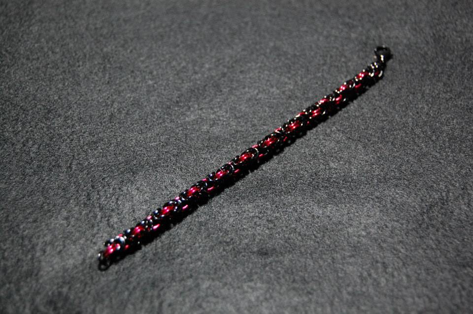 Byzantine Bracelet ← Previous Next → Black and Red Byzantine Bracelet Custom Byzantine bracelet in red and black anodized aluminum