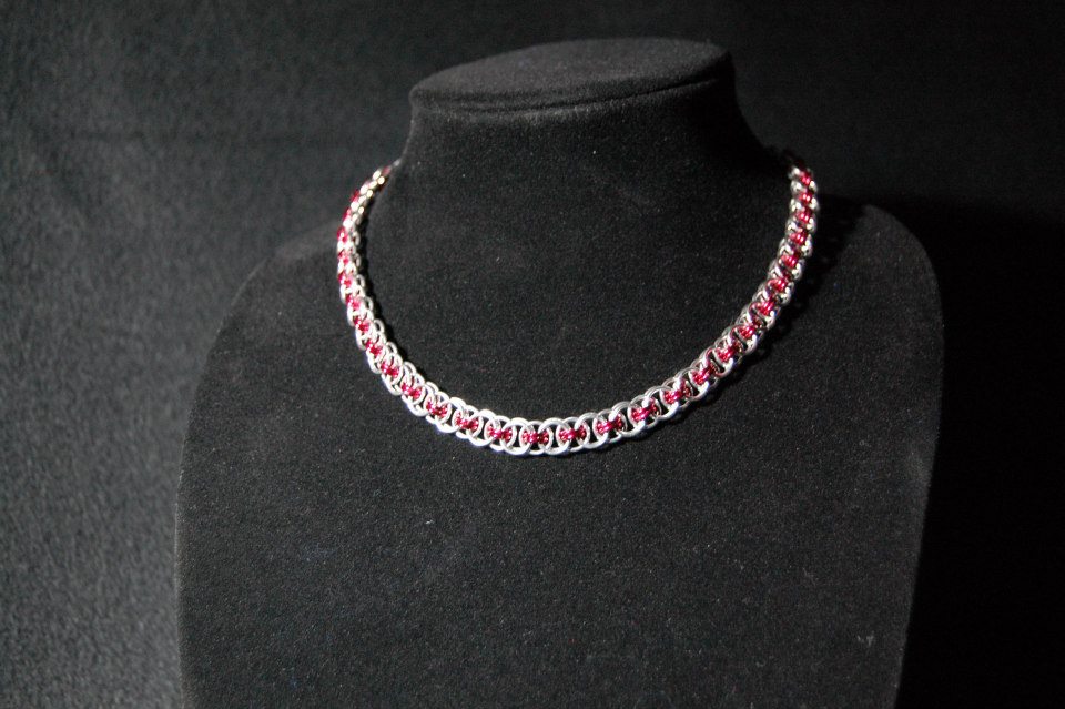 Celtic Line Necklace ← Previous Next → Celtic Line Silver and Red Necklace Custom Celtic Line necklace in silver and red anodized aluminum.