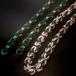 - Tri-Weave Byzantine wallet chain in green anodized aluminum and blackened stainless steel , and standard Byzantine wallet chain with regular and blackened stainless steel.