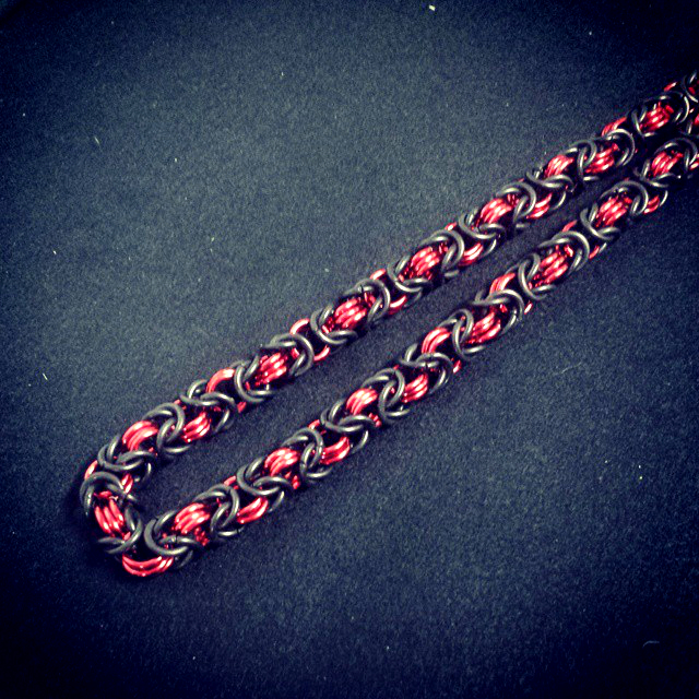 Red and Black Byzantine Wallet Chain ← Previous Next → 20″ Byzantine wallet chain in red anodized aluminum and blackened stainless steel. 20″ Byzantine wallet chain in red anodized aluminum and blackened stainless steel. Like Loading...