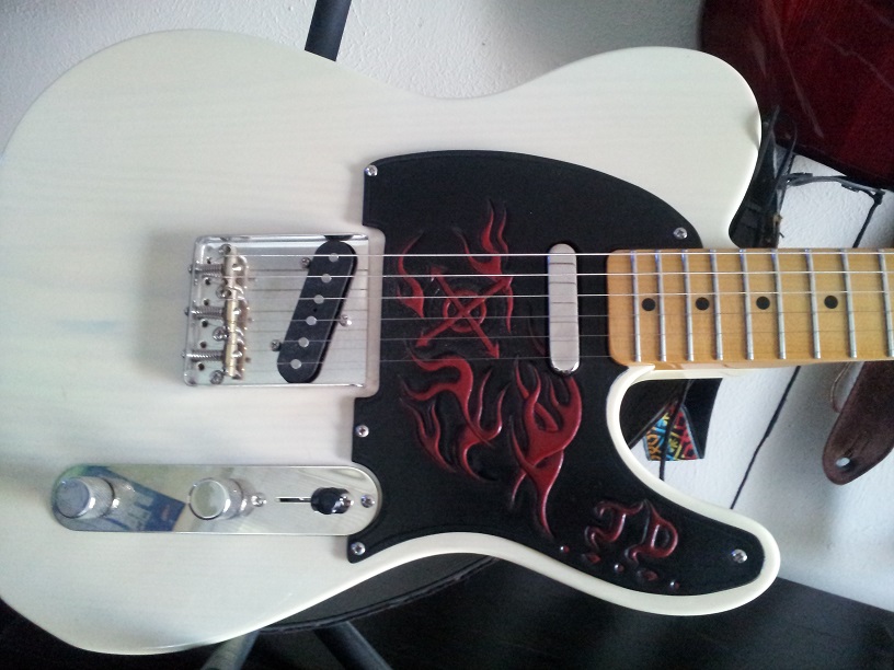 JD Flame Pickguard Mounted Next → SOLD Custom tooled leather pickguard for Squier Classic Vibe Telecaster Like Loading...