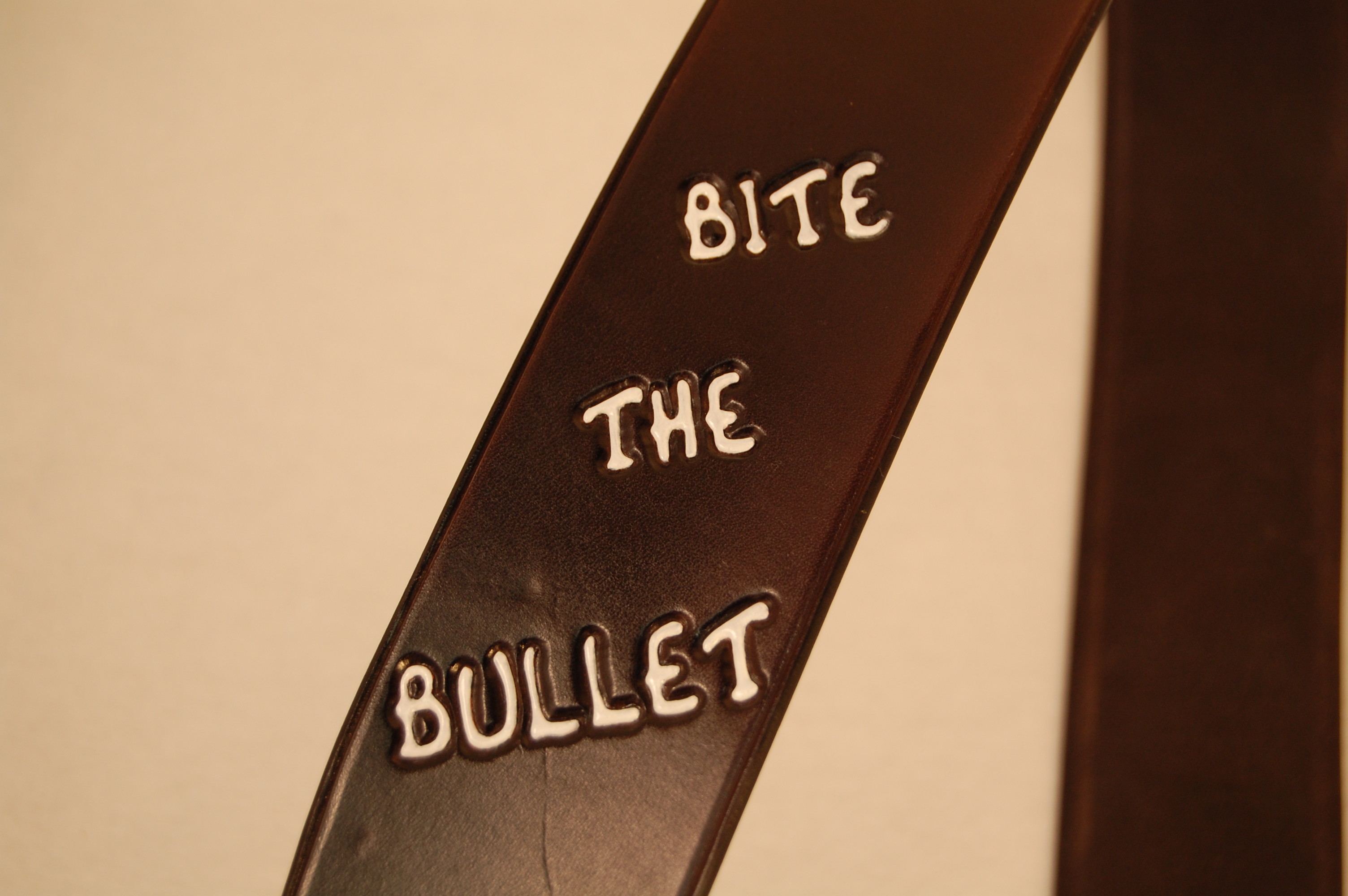 Custom Tooled “Bite The Bullet” Leather Guitar Strap ← Previous Next → Custom guitar strap with pigtail adjustment Like Loading...