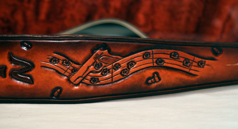 Custom Tooled “Gunslinger” Guitar Strap ← Previous Next → SOLD Custom “Guitar Slinger” guitar strap Like Loading...