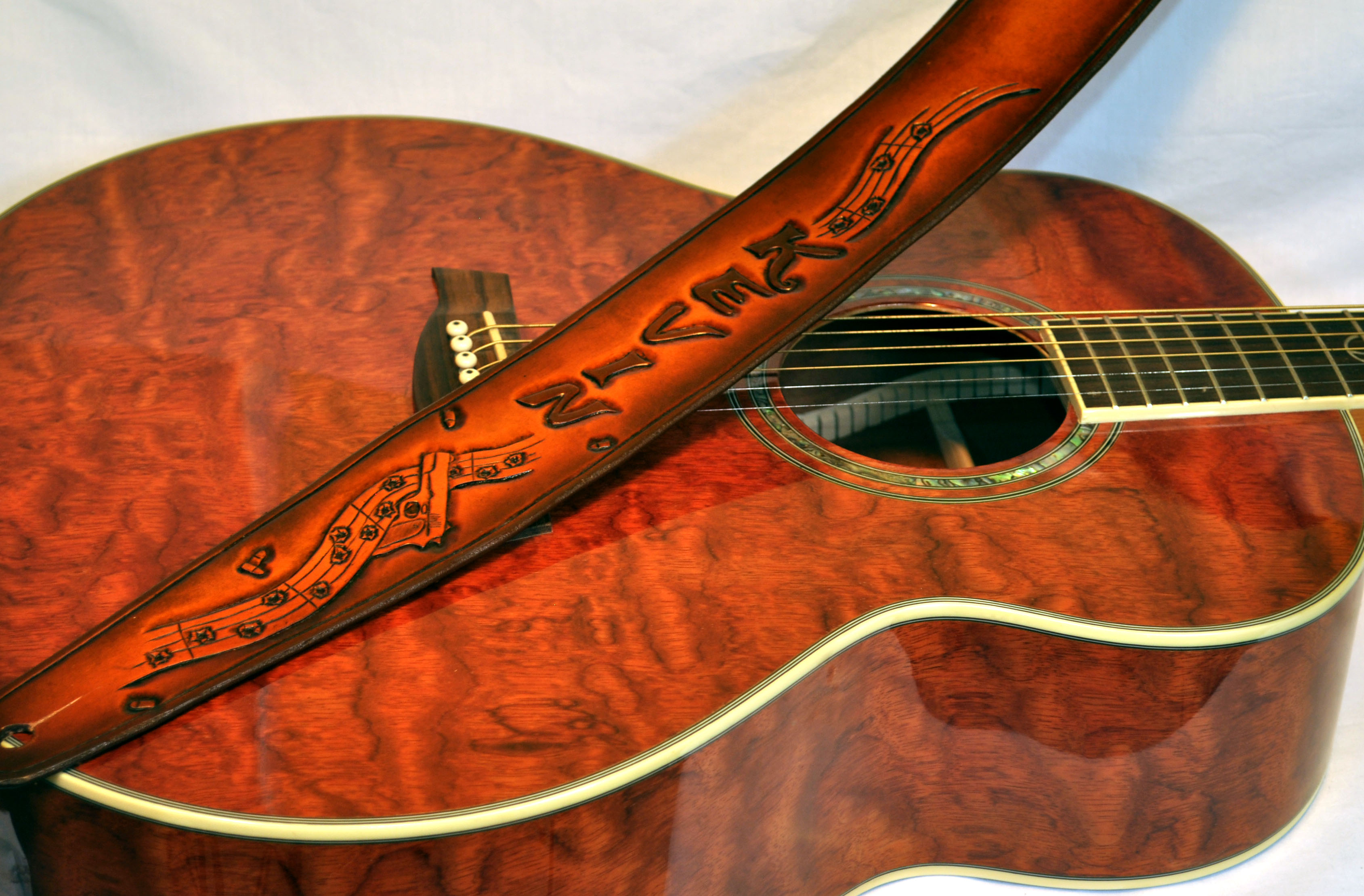 Custom Tooled “Gunslinger” Guitar Strap ← Previous Next → SOLD Custom “Guitar Slinger” guitar strap Like Loading...
